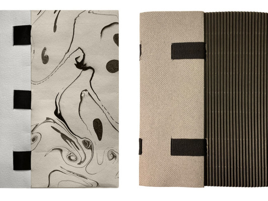 Deze bindwijze met soepele kaft is ontworpen door Julie Auzillon. Het is een lijmloze binding waar je veel mee kan variëren en waarbij je verschillende materialen met elkaar kunt combineren. Deze binding kan zowel voor 1 katern als meerdere katernen gebruikt worden. Docent: Katja Clement.