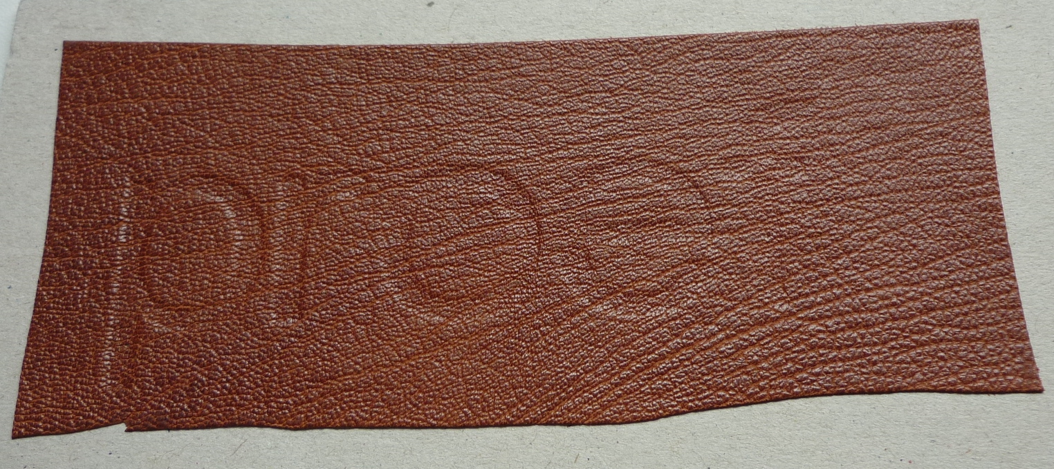 Het lijkt ook mogelijk om het leer aan de achterkant dieper te graveren, zodat de indruk aan de buitenkant, na opplakken van het leer, goed te zien zal zijn. Dit vraagt wel veel uitproberen. (foto 8)